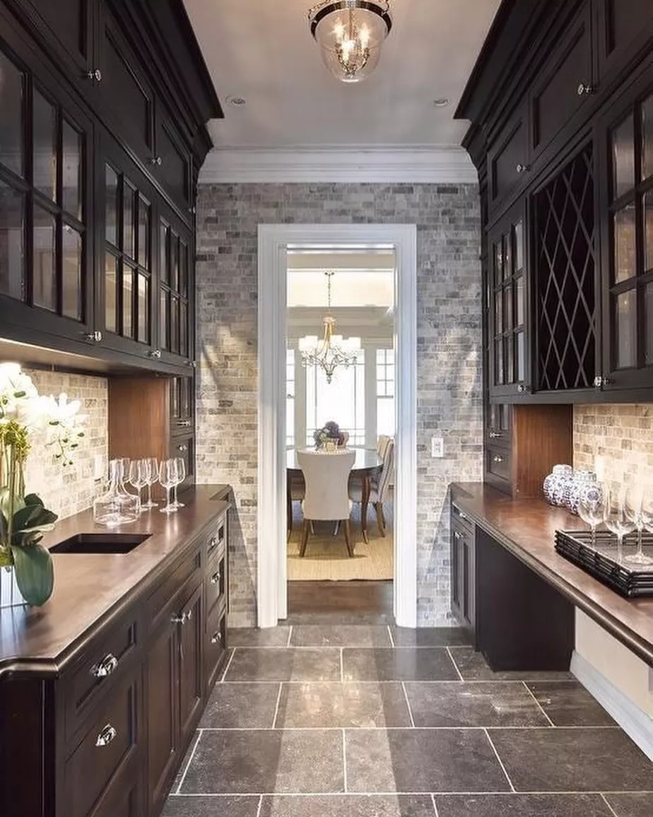 Zdecydowanie najpopularniejszy styl projektowania, tradycyjny, to mieszanka pięknych, ponadczasowych i dobrze zdefiniowanych elementów, jak pokazano w tej kuchni z olive.hill.interiors. Nigdy nie zagracony, zdystansowany ani surowy, tradycyjny styl polega na wygodzie i przytulności. Wyobraź sobie spokojne kolory, subtelne meble o klasycznych liniach i nacisk na symetrię.